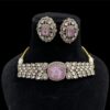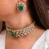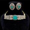 Emerald Green Victorian Polki Choker Set – Handcrafted Moissanite & Hydro Emerald Necklace with Matching Studs – Elegant Bridal Choker