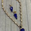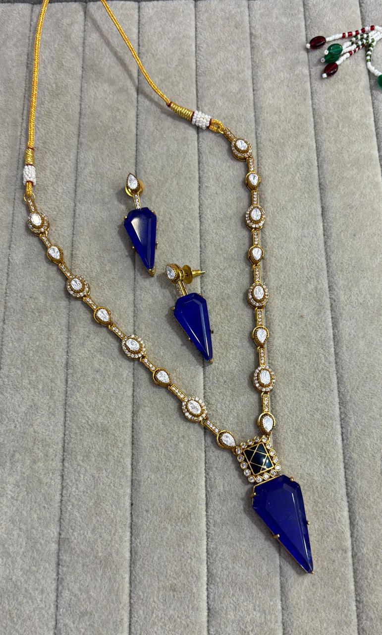 Gold Plated Kundan Polki Necklace Blue Doubled Silver Foil AD CZ Necklace Indian Victorian Style Bollywood Wedding Jewelry Set