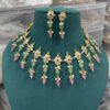 Gold Plating Emerald CZ Diamond Choker Pearl AD Necklace