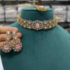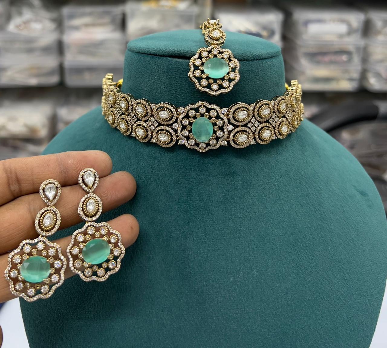 Gold Plated American Diamond Choker Set Kundan Polki Silver Foil Necklace Monalisa Choker With CZ Diamond Maangtikka Indian Bridal Jewelry