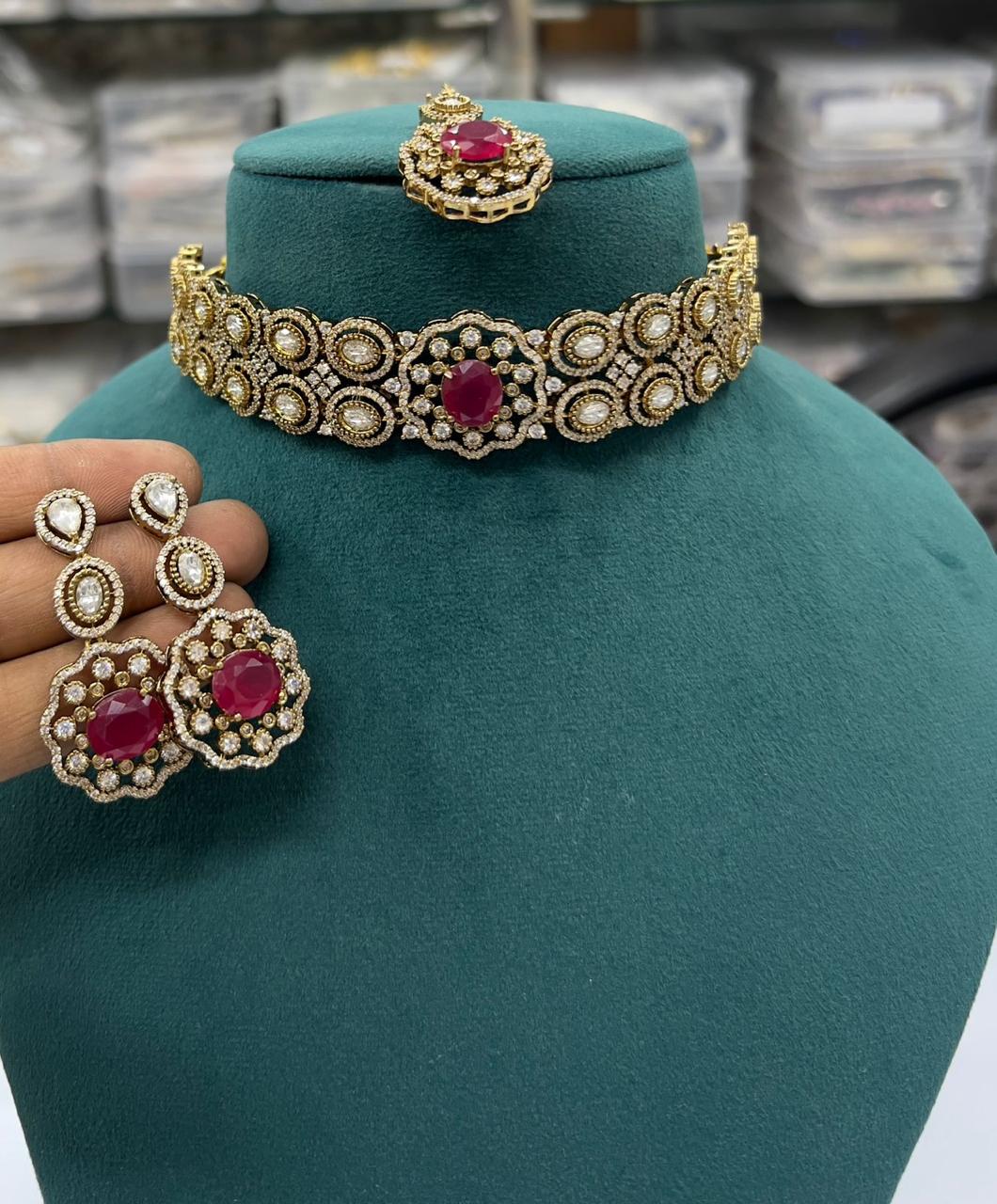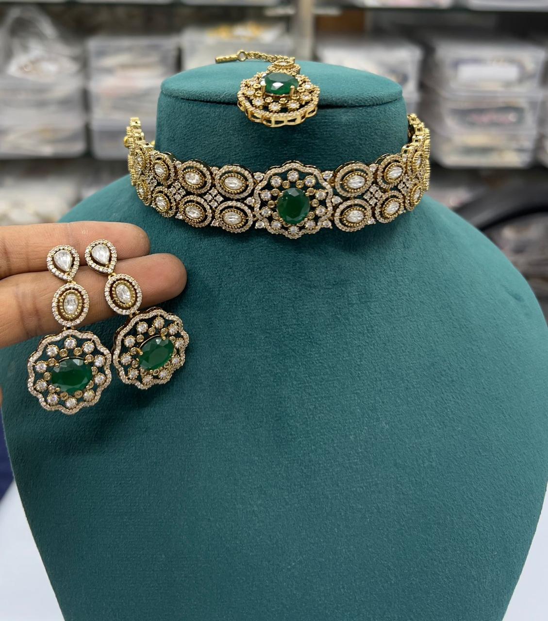 Product : Necklace and Earrings And Maangtikka