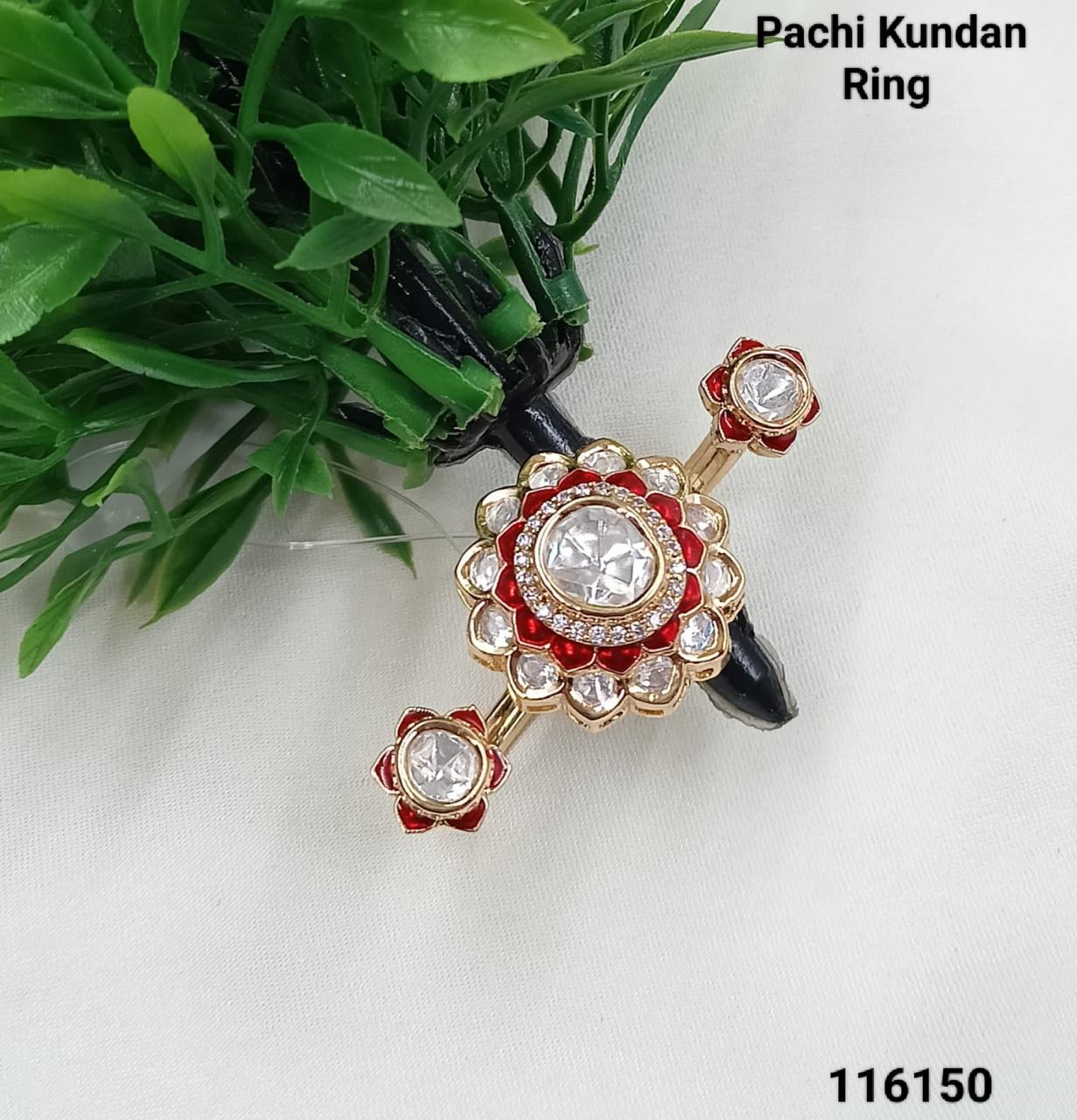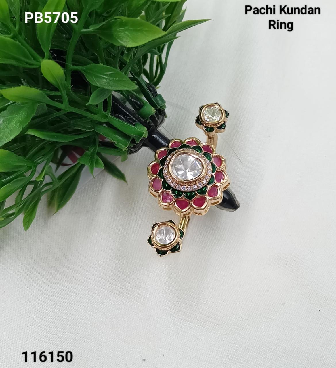 Kundan Adjustable Ring • Green Enamel Floral Wrap Ring • Traditional Indian Jewelry • Ethnic Statement Ring for Women • Bollywood Style Jewelry