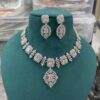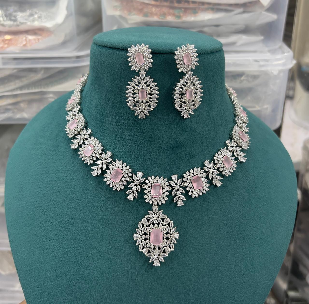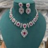 Silver Tone Ruby Cubic Zirconia AD Stone Wedding Necklace Indian Designer American Diamond Necklace
